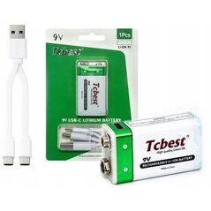 Akumulator Li-ion Bateria 9v R9 1000mah Port Ładowania Usb-c Type-c Tcbest / Usb-c 9v