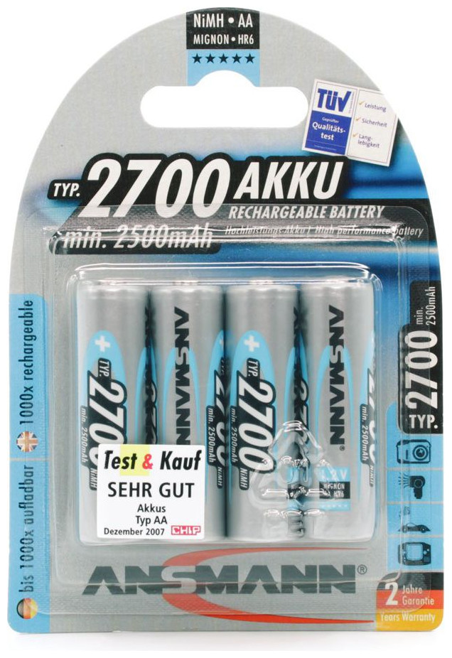 Μπαταρία Ansmann Mignon, NiMh, 4xAA, 2700mA, 1,2V.{Τύπος} Μπαταρία . {Τύπος} Μπαταρία . {Τάση} 1,2V . {Τάση} 1,2V . {Χωρητικότητα} 2700 mAh. {Χωρητικότητα} 2700 mAh. {Ποσότητα} 4 τεμ. {Ποσότητα} 4 τεμ. {Τεχνολογία} Υδρίδιο μετάλλου Νικελίου (NiMH) . {Τεχνολογία} Υδρίδιο μετάλλου Νικελίου (NiMH) . {Μέγεθος}AA/R6. {Μέγεθος}AA/R6. {Series} Κανένα . {Series} Κανένα
