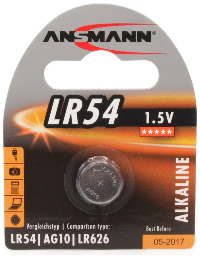 Μπαταρία Ansmann, LR 54, 1,5V.{Ποσότητα} 1 τεμ. {Τύπος} Μπαταρία . {Τάση} 1,5V . {Τεχνολογία} Αλκαλικό . {Μέγεθος}LR54 . {Series} Κανένα . {Capacity} Δεν υπάρχουν διαθέσιμα δεδομένα