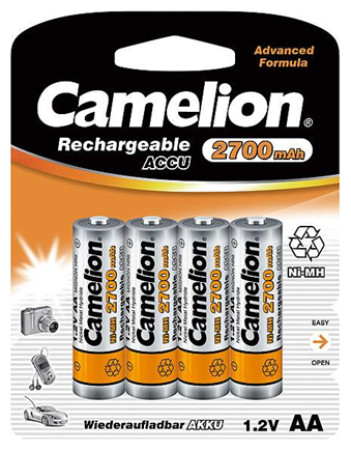 Τα επιτεύγματα στην τεχνολογία παραγωγής αυτών των στοιχείων επέτρεψαν υψηλές χωρητικότητες και μεγάλη διάρκεια ζωής (μεγάλος αριθμός κύκλων φόρτισης/εκφόρτισης).{Τύπος} Μπαταρία . {Τάση} 1,2V . {Χωρητικότητα} 2700 mAh. {Ποσότητα} 4 τεμ. {Τεχνολογία} Υδρίδιο μετάλλου Νικελίου (NiMH) . {Μέγεθος}AA/R6. {Series} Επαναφορτιζόμενη