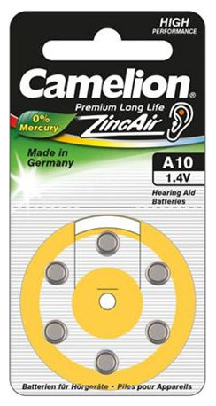 Μπαταρίες Zinc Air A10, 6 τεμάχια από την Camelion.{Τύπος} Μπαταρία . {Ποσότητα} 6 τεμ. {Τάση} 1,4 V . {Τεχνολογία}Ψευδάργυρος-αέρας. {Size}PR70 . {Σειρά} για ακουστικά βαρηκοΐας. {Capacity} Δεν υπάρχουν διαθέσιμα δεδομένα