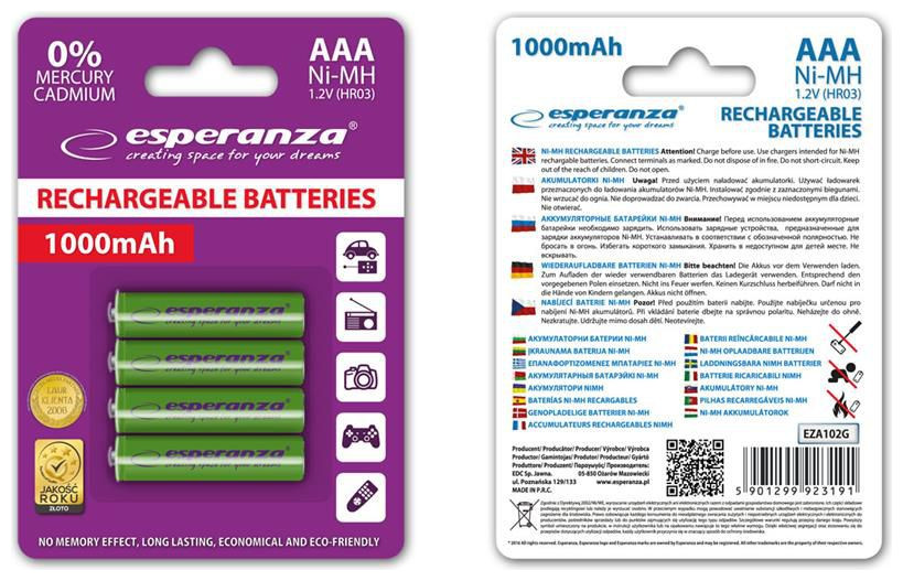 Akumulatorki Esperanza łączą najnowszą technologię nowoczesnych akumulatorków niklowo-wodorkowych z zaletami tradycyjnych baterii alkalicznych i znakomicie je zastępują.