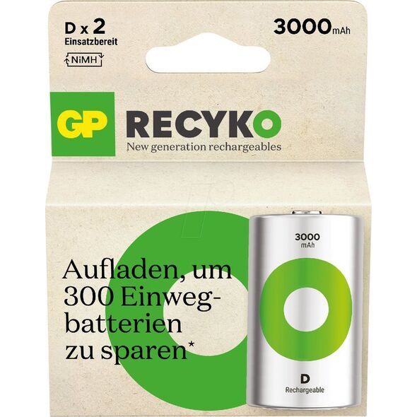 GP 1x2 GP ReCyko NiMH Ακροδέκτες D Mono 3000 mAH, έτοιμο προς χρήση