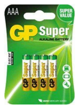Οι μπαταρίες GP Super Alkaline καλύπτουν καλύτερα την αυξανόμενη ενεργειακή ζήτηση των καθημερινών συσκευών. Προσφέρουν μεγάλη απόδοση σε λογική τιμή. Μια μεγάλη γκάμα μοντέλων καθιστά αυτές τις μπαταρίες κατάλληλες για την τροφοδοσία πολλών συσκευών.* Διαρκής απόδοση* Μεγάλη γκάμα μοντέλων σε πολλά μεγέθη* Διάρκεια ζωής έως 7 χρόνια{Ποσότητα} 4 τεμ. {Τύπος} Μπαταρία . {Τάση} 1,5V . {Τεχνολογία} Αλκαλικό . {Μέγεθος} AAA / R03 . {Series} Κανένα . {Capacity} Δεν υπάρχουν διαθέσιμα δεδομένα