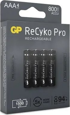 GP GP ReCyko Pro Επαναφορτιζόμενη Μπαταρία, Μέγεθος AAA, 800 mAh, συσκευασία 4 τεμαχίων