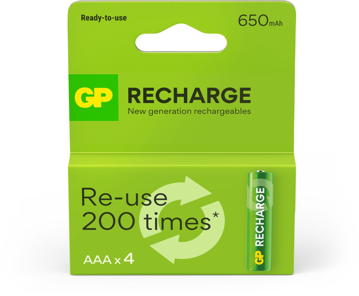GP Επαναφορτιζόμενη Μπαταρία Recharge, Μέγεθος AAA, 650 mAh, συσκευασία 4 τεμαχίων