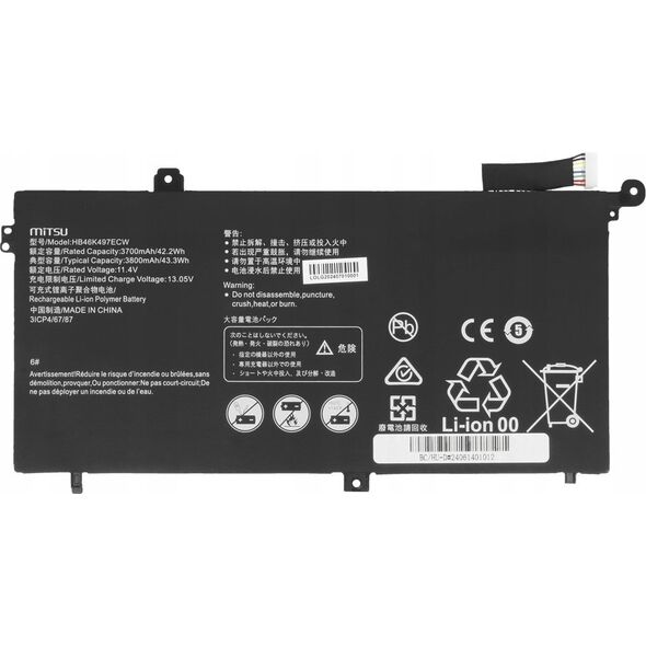 mitsu Μπαταρία για το Smartphone Huawei Matebook D Series HB46K497ECW 3700 mAh (42.2 Wh) 11.4V