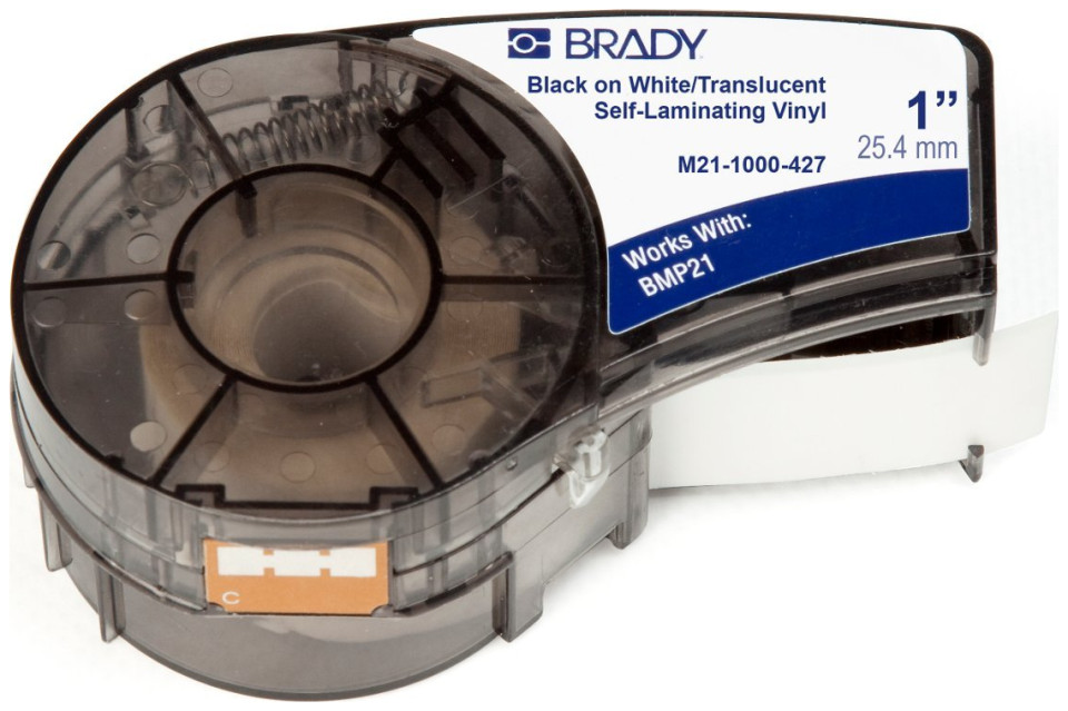 Brady M21-1000-427. Kolor produktu: Półprzezroczysty, Biały, Rodzaj etykiety: Samoprzylepne etykiety do drukowania, Materiały: Winyl