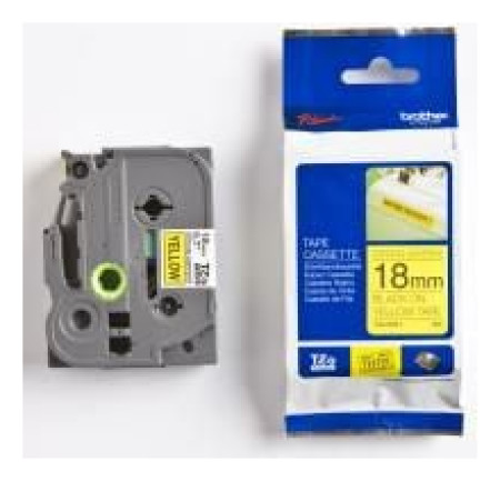 Πολυστρωματική ταινία με ισχυρή κόλλα, πλάτους 18 mm, μαύρο τύπωμα / κίτρινο φόντο, μήκος: 8 μέτρα.