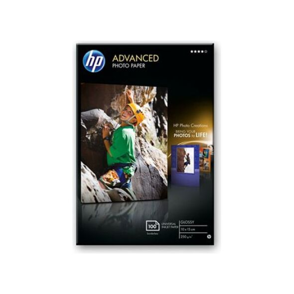 Φωτογραφικό χαρτί HP Advanced, γυαλιστερό, 250 g/m^(2), 10 x 15 cm χωρίς περιθώρια, 100 φύλλα Οι φωτογραφίες που εκτυπώνονται σε φωτογραφικό χαρτί HP Advanced στεγνώνουν αμέσως, είναι ανθεκτικά στο νερό και μπορούν να αφαιρεθούν αμέσως από τον εκτυπωτή χωρίς τον κίνδυνο επάλειψη . Φωτογραφίες επαγγελματικής ποιότητας με πλούσια, ζωντανά χρώματα και λαμπερό, επαγγελματικό φινίρισμα που είναι ιδανικές για καδράρισμα και κοινή χρήση με άλλους.
