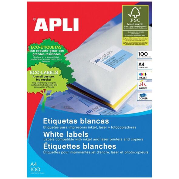 καθολικές αυτοκόλλητες ετικέτες για inkjet, εκτυπωτές λέιζερ και φωτοτυπικά μηχανήματα ειδικής φόρμουλας κόλλας δεν διαλύεται σε υψηλές θερμοκρασίες, επομένως δεν διαρρέει και δεν συσσωρεύεται στον μηχανισμό του εκτυπωτή Μέγεθος ετικέτας: 70x50,8 mm αριθμός ετικετών σε φύλλο: 15 γραμμάρια: 143 gsm (ματ χαρτί) λευκότητα: 162 μεγέθη ετικετών CIE συμβατά με τα πιο δημοφιλή προγράμματα ηλεκτρονικών υπολογιστών έχουν πιστοποίηση FSC, η οποία εγγυάται ότι το χαρτί προέρχεται από οικολογικά διαχειριζόμενες δασικές περιοχές δωρεάν πρόγραμμα για σχεδιασμό και εκτύπωση ετικετών APLI SOFT, επίσης συμβατό με Windows 7 λογισμικό, διαθέσιμο στο apli.com ή στο pbspolska eu 100 φύλλα στα αγγλικά χρώμα λευκό EAN: 8410782012955{Αριθμός φύλλων [τεμ]} 100 . {Αριθμός φύλλων [τεμ]} 100 . {Αριθμός φύλλων [τεμ]} 100 . {Format} Προσαρμοσμένο . {Format} Προσαρμοσμένο . {Format} Προσαρμοσμένο . {Type} Universal . {Type} Universal . {Type} Universal