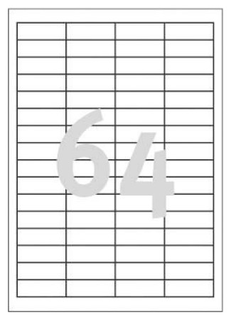 Σχεδιασμένο για όλους τους τύπους εκτυπωτών inkjet και laser και φωτοτυπικών μηχανημάτων. διαθέτουν τεχνολογία QCT που εμποδίζει τη διαφυγή της κόλλας κατά την εκτύπωση, η οποία προστατεύει τα ευαίσθητα εξαρτήματα του εκτυπωτή από ζημιά. έχουν ένα μοναδικό σύστημα QuickPEEL™ που διευκολύνει το σχίσιμο και την ταχύτερη κόλληση των ετικετών. μέγεθος: 48,5 x 16,9 mm; 100 φύλλα (64 ετικέτες ανά φύλλο - 4x16), 6400 ετικέτες ανά συσκευασία. περιθώριο ολόγυρα.{Μορφή} A4 . {Type} Universal