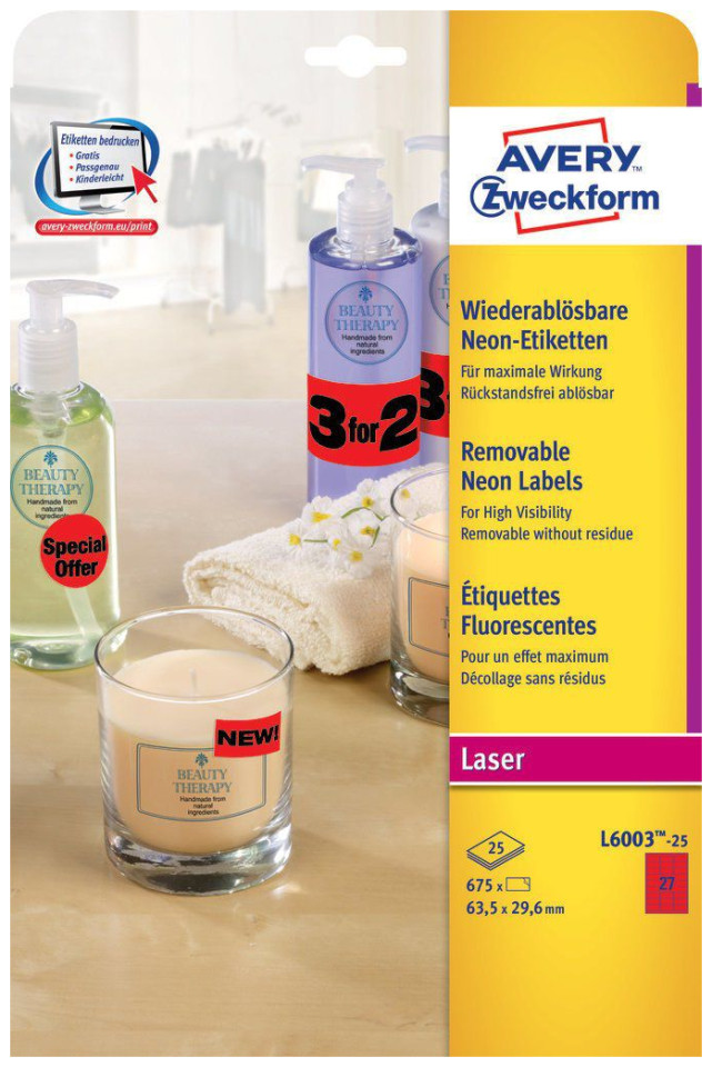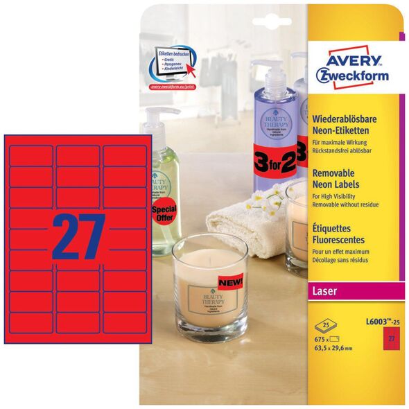 Ετικέτες Avery Zweckform Neon 63,5 x 29,6 mm κόκκινο
