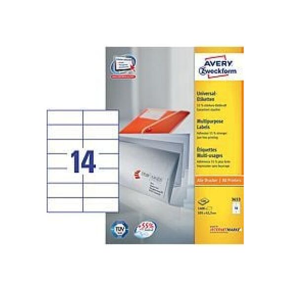 Avery Zweckform Ετικέτες Γενικής Χρήσης, Λευκές 105x42.3mm 100 φύλλα (3653)