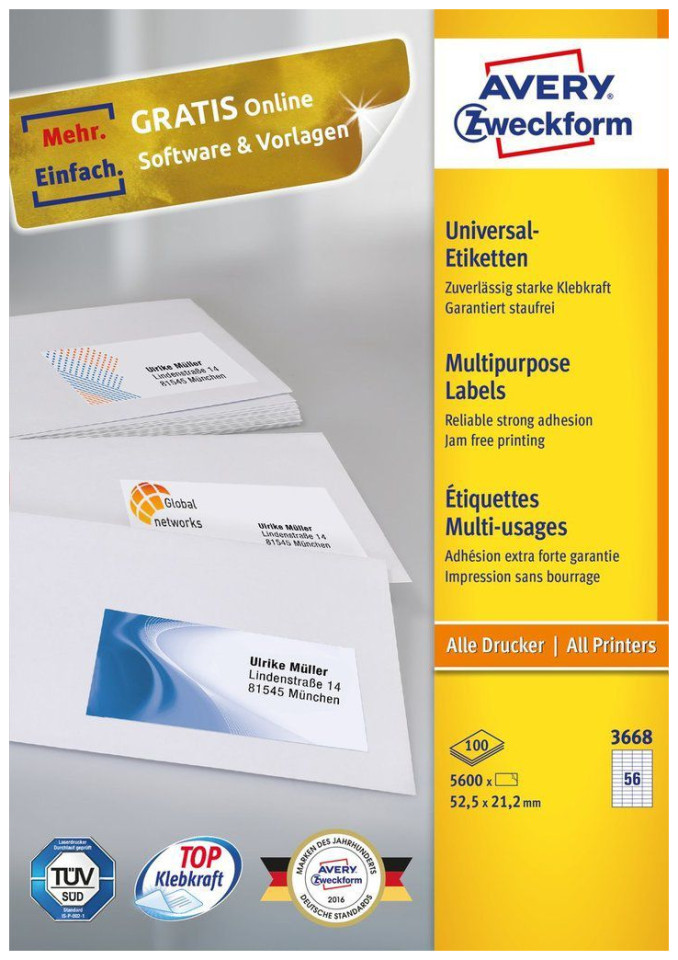 Avery Zweckform Universal αυτοκόλλητες ετικέτες 52,5 x 21,2 mm