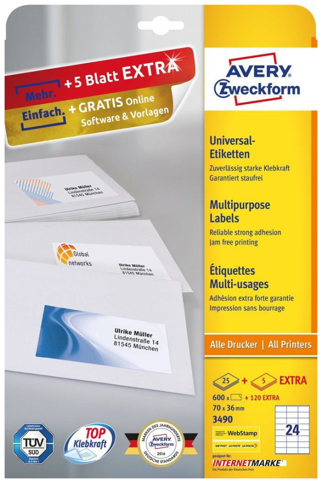 Αυτοκόλλητες ετικέτες Avery Zweckform Universal 70 x 36 mm.