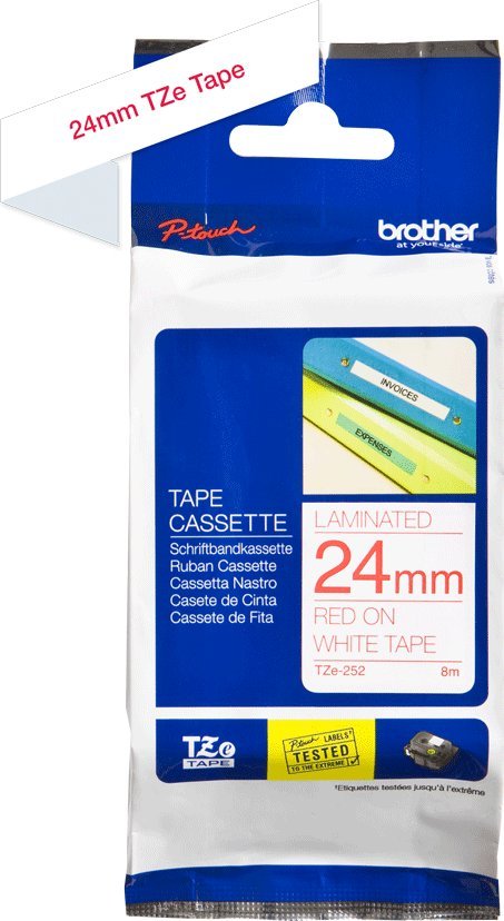 Brother Brother | TZe-252 Επικολλητική Ταινία | Κόκκινο σε Λευκό | TZe | 8 μ | 2.4 εκ