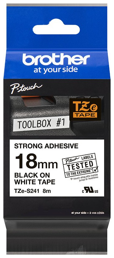 Brother Brother | TZe-S241 Ισχυρή Κολλητική Πλαστικοποιημένη Ταινία | Μαύρο σε Λευκό | TZe | 8 μ | 1.8 εκ