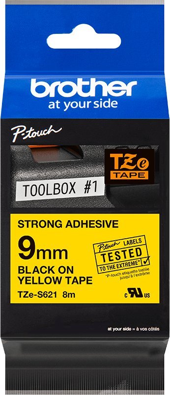 Brother Brother | TZe-S621 Ισχυρή Κολλητική Επικολλημένη Ταινία | Μαύρο σε Κίτρινο | TZe | 8 m | 9 cm
