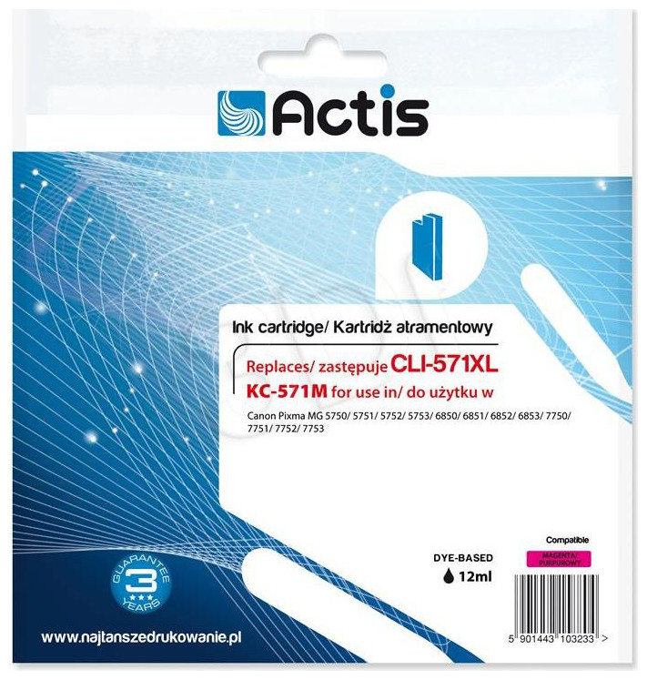 Ματζέντα μελάνι Actis KC-571M για εκτυπωτή Canon (αντικατάσταση για Canon CLI-571M).{Χρώμα} Ματζέντα . {Αφιερωμένο μοντέλο} Canon Pixma MG5750. {Αφιερωμένο μοντέλο} Canon Pixma MG5751 . {Αφιερωμένο μοντέλο} Canon Pixma MG5752 . {Αφιερωμένο μοντέλο} Canon Pixma MG5753 . {Αφιερωμένο μοντέλο} Canon Pixma MG6851 . {Dedicated model} Canon Pixma MG6852 . {Αφιερωμένο μοντέλο} Canon Pixma MG6853 . {Αφιερωμένο μοντέλο} Canon Pixma MG7750. {Αφιερωμένο μοντέλο} Canon Pixma MG7751 . {Αφιερωμένο μοντέλο} Canon Pixma MG7752 . {Αφιερωμένο μοντέλο} Canon Pixma MG7753 . {Αφιερωμένο μοντέλο} Canon Pixma MG6850 . Κασέτα {Type} . Αντικατάσταση {Type}