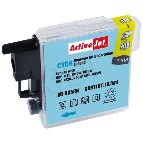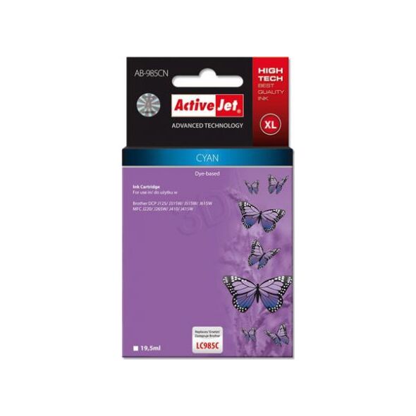 Τα δοχεία ActiveJet απευθύνονται σε πελάτες που αναμένουν την υψηλότερη ποιότητα εκτύπωσης. Χαρακτηρίζονται από αυξημένη χωρητικότητα σε σχέση με τα αυθεντικά προϊόντα και πιστή αναπαραγωγή του τύπου μελανιού. Όλα τα δοχεία υποβάλλονται σε πολυάριθμες δοκιμές σε κάθε στάδιο παραγωγής, γεγονός που εξαλείφει αποτελεσματικά τα ελαττώματα και εξασφαλίζει την ικανοποίηση της καλύτερης εκτύπωσης. Κασέτα μελάνης κορυφαίας έκδοσης, συμβατό με συσκευές εκτύπωσης Brother, αντικατάσταση για το μοντέλο LC985C. Το προϊόν περιέχει μελάνι μπλε βαφής με αυξημένη χωρητικότητα 19,5 ml.{Dedicated model} Brother DCP-J125. {Dedicated model} Brother DCP-J125. {Dedicated model} Brother DCP-J315W . {Dedicated model} Brother DCP-J315W . {Dedicated model} Brother DCP-J515W . {Dedicated model} Brother DCP-J515W . {Dedicated model} Brother MFC-J410. {Dedicated model} Brother MFC-J410. {Dedicated model} Brother MFC-J415W . {Dedicated model} Brother MFC-J415W . {Dedicated model} Brother MFC-J220. {Dedicated model} Brother MFC-J220. {Dedicated model} Brother DCP-J265W . {Dedicated model} Brother DCP-J265W . {Χρώμα} Κυανό . {Χρώμα} Κυανό . Κασέτα {Type} . Κασέτα {Type} . Αντικατάσταση {Type} . Αντικατάσταση {Type}