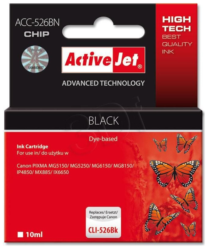 Τα δοχεία ActiveJet απευθύνονται σε πελάτες που αναμένουν την υψηλότερη ποιότητα εκτύπωσης. Χαρακτηρίζονται από αυξημένη χωρητικότητα σε σχέση με τα αυθεντικά προϊόντα και πιστή αναπαραγωγή του τύπου μελανιού. Όλα τα δοχεία υποβάλλονται σε πολυάριθμες δοκιμές σε κάθε στάδιο παραγωγής, γεγονός που εξαλείφει αποτελεσματικά τα ελαττώματα και εξασφαλίζει την ικανοποίηση της καλύτερης εκτύπωσης. Κασέτα μελάνης κορυφαίας έκδοσης, συμβατό με συσκευές εκτύπωσης Canon, αντικατάσταση για το μοντέλο CLI-526Bk. Το προϊόν περιέχει μελάνι μαύρης βαφής με αυξημένη χωρητικότητα 10 ml. Ταιριάζει σε συσκευές Canon PIXMA: IP4820, IP4840, IP4850, IP4870, MG5120, MG5140, MG5150, MG5170, MG5220, MG5240, MG5250, MG5270, MG61140, MG61120, MG61120, 0, MG8140, MG8150, MG8170{Dedicated model} Canon Pixma IP4850 . {Dedicated model} Canon Pixma IP4850 . {Dedicated model} Canon Pixma IP4850 . {Dedicated model} Canon Pixma IP4820 . {Dedicated model} Canon Pixma IP4820 . {Dedicated model} Canon Pixma IP4820 . {Dedicated model} Canon Pixma IP4840 . {Dedicated model} Canon Pixma IP4840 . {Dedicated model} Canon Pixma IP4840 . {Dedicated model} Canon Pixma IP4870 . {Dedicated model} Canon Pixma IP4870 . {Dedicated model} Canon Pixma IP4870 . {Dedicated model} Canon MG5120. {Dedicated model} Canon MG5120. {Dedicated model} Canon MG5120. {Dedicated model} Canon MG5140. {Dedicated model} Canon MG5140. {Dedicated model} Canon MG5140. {Αφιερωμένο μοντέλο} Canon MG5150. {Αφιερωμένο μοντέλο} Canon MG5150. {Αφιερωμένο μοντέλο} Canon MG5150. {Αφιερωμένο μοντέλο} Canon MG5170 . {Αφιερωμένο μοντέλο} Canon MG5170 . {Αφιερωμένο μοντέλο} Canon MG5170 . {Dedicated model} Canon MG5220. {Dedicated model} Canon MG5220. {Dedicated model} Canon MG5220. {Dedicated model} Canon MG5240 .
