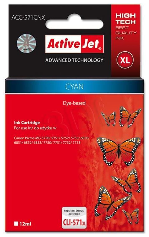Κυανό μελάνι ActiveJet ACC-571CNX για εκτυπωτή Canon (αντικατάσταση για Canon CLI-571C XL).{Χρώμα} Κυανό . {Αφιερωμένο μοντέλο} Canon Pixma MG5750 . {Αφιερωμένο μοντέλο} Canon Pixma MG5751 . {Αφιερωμένο μοντέλο} Canon Pixma MG5752 . {Αφιερωμένο μοντέλο} Canon Pixma MG5753 . {Αφιερωμένο μοντέλο} Canon Pixma MG6851 . {Αφιερωμένο μοντέλο} Canon Pixma MG6852 . {Αφιερωμένο μοντέλο} Canon Pixma MG6853 . {Αφιερωμένο μοντέλο} Canon Pixma MG7750. {Αφιερωμένο μοντέλο} Canon Pixma MG7751 . {Αφιερωμένο μοντέλο} Canon Pixma MG7752 . {Αφιερωμένο μοντέλο} Canon Pixma MG6850 . Κασέτα {Type} . Αντικατάσταση {Type}