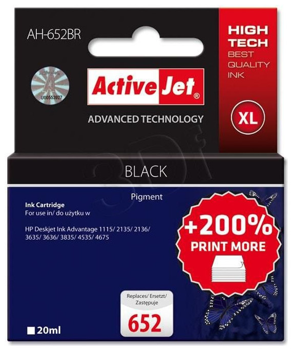 Activejet Ink AH-652BR / HP 652 F6V25AE (Μαύρο).