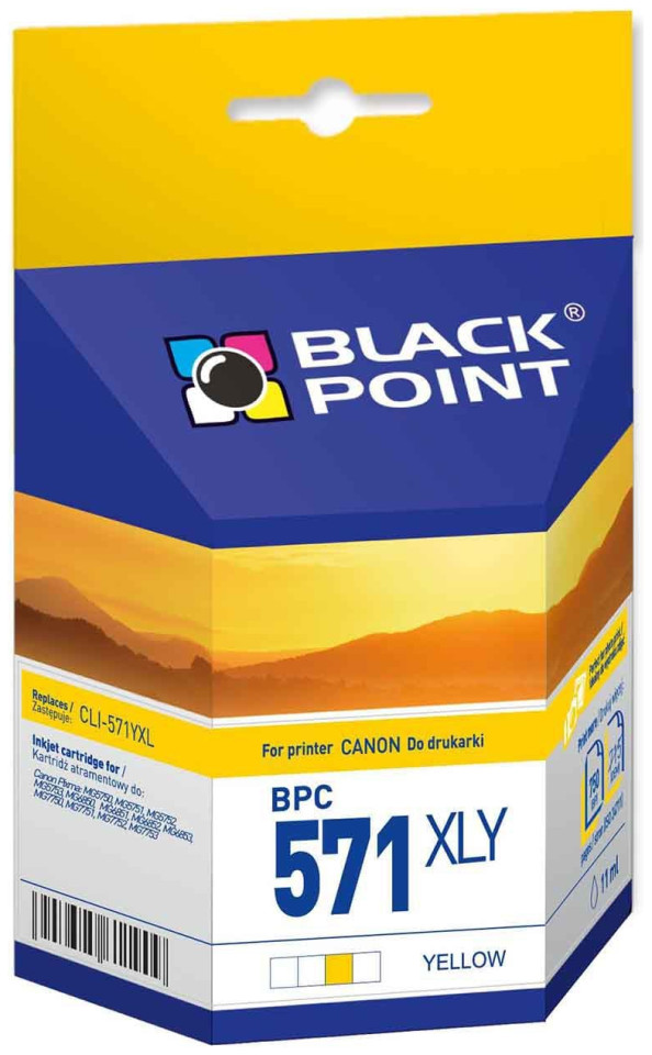 Κασέτα μελανιού Black Point BPC571XLY. Αντικαθιστά το Canon CLI-571YXL. Απόδοση: 750 σελίδες (35 ακόμη σελίδες - ISO 24711). Χωρητικότητα: 11 ml. Συμβατό με: Canon Pixma: MG5750, MG5751, MG5752, MG5753, MG6850, MG6851, MG6852, MG6853, MG7750, MG7751, MG7752, MG7753.{Αφιερωμένο μοντέλο} Canon Pixma MG5750 . {Αφιερωμένο μοντέλο} Canon Pixma MG5751 . {Αφιερωμένο μοντέλο} Canon Pixma MG5752 . {Αφιερωμένο μοντέλο} Canon Pixma MG5753 . {Αφιερωμένο μοντέλο} Canon Pixma MG6851 . {Αφιερωμένο μοντέλο} Canon Pixma MG6852 . {Αφιερωμένο μοντέλο} Canon Pixma MG6853 . {Αφιερωμένο μοντέλο} Canon Pixma MG7750. {Αφιερωμένο μοντέλο} Canon Pixma MG7751 . {Αφιερωμένο μοντέλο} Canon Pixma MG7752 . {Αφιερωμένο μοντέλο} Canon Pixma MG7753 . {Αφιερωμένο μοντέλο} Canon Pixma MG6850 . {Χρώμα} Κίτρινο . {Type}Κασέτα
