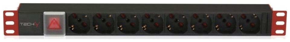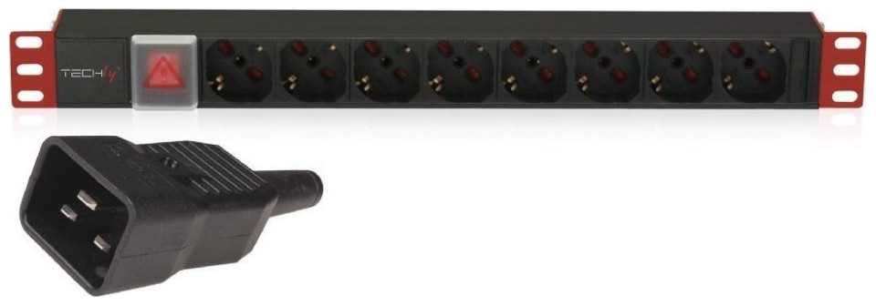 TechlyPro PDU I-CASE STRIP-18C20, P/N: 102635 – PDU Rack Power Strip 19” 1U 8x Schuko/UNEL Socket, Illuminated Switch, 250V/16A, 3m C20 Cable