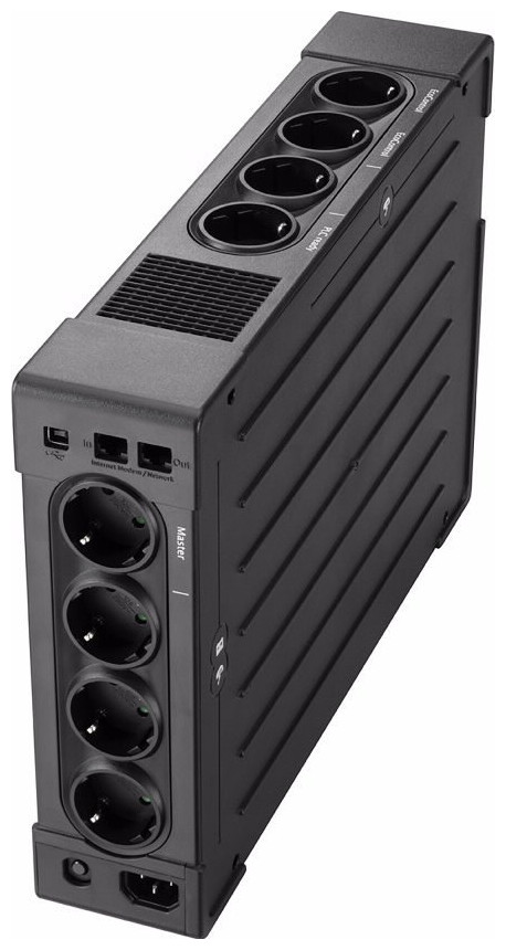 UPS Eaton Ellipse PRO UPS Eaton Ellipse PRO 650-1600 VA to zasilacz line-interactive opracowany specjalnie w celu ochrony stacji roboczych obsługujących wymagające zastosowania. UPS Ellipse PRO jest wyposażony w wyświetlacz LCD służący do wyświetlania statusu i pomiarów w czasie rzeczywistym. Posiada on również gniazda zasilania EcoControl, które umożliwiają zwiększenie oszczędności energii nawet o 20% oraz przeciwprzepięciową funkcję Advanced Surge Reduction (ASR), która jest w pełni zgodna z wymaganiami normy IEC 61643-1. Wyświetlacz LCD Ekran LCD zapewnia czytelne informacje o stanie i pomiarach UPS. Pozwala również na łatwą konfigurację podstawowych ustawień zasilacza. Funkcja EcoControl Automatycznie wyłączanie urządzeń peryferyjnych (np. monitor), gdy urządzenie nadrzędne (komputer) zostanie wyłączone pozwala zasilaczowi UPS Eaton Ellipse ECO zaoszczędzić nawet o 20% więcej energii w porównaniu z zasilaczami UPS poprzedniej generacji. Kompaktowa obudowa Wyjątkowo płaska konstrukcja ułatwia instalację w każdym środowisku biurowym: opcje instalacji obejmują: ustawienie pionowe na biurku, pod biurkiem, poziome pod monitorem, w szafie rack 19” (z opcjonalnym zestawem 2U) lub na ścianie (z opcjonalnym zestawem).