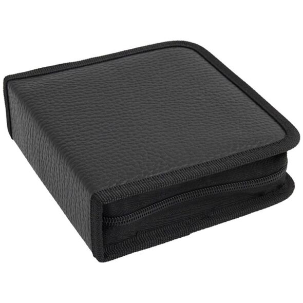 Etui na 40 płyt CD/DVD Kompaktowe, zamykane etui mieszczące aż do 40 nośników kompaktowych (CD/DVD). Uporządkuj i chroń swoje kolekcje płyt z muzyką, grami i programami! Cechy i specyfikacja produktu: Produkt fabrycznie nowy, wysokiej jakości. Pojemne etui na płyty CD/DVD/Bluray - pomieści aż 40 płyt. Przezroczyste koszulki zapewniają doskonałą widoczność etykiet płyt, a miękka warstwa wewnętrzna koszulki zapobiega zarysowaniu płyt. Przeznaczone do transportu i przechowywania płyt CD i DVD. Fantastyczny produkt dla każdego kto potrzebuje doskonałego rozwiązania do uporządkowania swoich zbiorów płyt CD/DVD! Trzymaj wszystkie płyty CD i DVD w jednym miejscu. Koniec z bałaganem wokół komputera lub sprzętu Audio. Wygodne zapięcie na zamek błyskawiczny! Materiał: ekoskóra Grubość: 5 cm Szerokość: 15,5 cm Długość: 16 cm Kolor: czarny