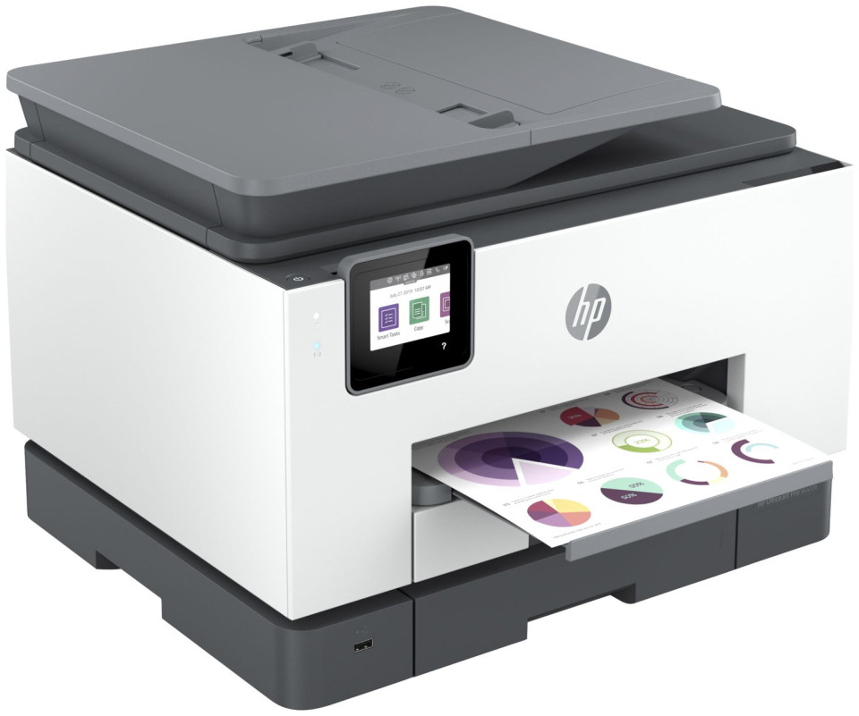 Urządzenie wielofunkcyjne HP OfficeJet Pro 9022e z możliwością aktywacji systemu HP+ Przygotuj się! Każdy moment drukowania jest ważny. Zawsze gotowa i zawsze bezpieczna drukarka dzięki inteligentnemu połączeniu z chmurą. Wypróbuj 6 miesięcy okresu próbnego subskrypcji Instant Ink! Dzięki funkcji HP Instant Ink tusz dostarczymy do Twoich drzwi. Nigdy Ci go nie zabraknie! Po 6 miesiącach będzie obowiązywać miesięczna subskrypcja aż do jej anulowania. Nie pracuj ciężko. Pracuj inteligentnie. Skanuj i wysyłaj dokumenty bez problemu dzięki zaawansowanym funkcjom aplikacji HP Smart. W ramach HP+ dbamy o naszą planetę, drukując ekologicznie i stosując recycling wkładów. Za każdym razem, gdy drukujesz jedną stronę, HP inwestuje w ochronę i odtwarzanie lasów w ramach programu Forest First. Urządzenie wielofunkcyjne OfficeJet 9022e Inteligentne urządzenie wielofunkcyjne 4 w 1: drukuj, kopiuj, skanuj, faksuj. Ograniczenie przestojów w pracy dzięki funkcji samonaprawiającego się Wi-Fi® 802.11b/g/n. Łącza: 1 USB 2.0; 1 Host USB; 1 Ethernet. Korzystaj z automatycznego druku dwustronnego, aby oszczędzić czas i pieniądze. Pracuj szybko i niemal bez nadzoru dzięki automatycznemu podajnikowi dokumentów na 35 arkuszy. Podejmuj się zadań obejmujących duże ilości dokumentów, dzięki podajnikom, które mieszczą całą ryzę papieru i odbiornikowi na 100 arkuszy. Drukuj w czerni z prędkością ok. 24 str./min (A4/ISO) i 20 str./min w kolorze (A4/ISO). Kolorowy ekran dotykowy 2.7" pozwala intuicyjnie obsługiwać drukarkę. Więcej korzyści z aplikacją mobilną HP Smart w systemie druku Dzięki HP+ zyskujesz podłączenie do drukowania w chmurze i zaawansowane funkcje aplikacji HP Smart Funkcja Privat Pickup dba, aby Twoje wydrukowane dokumnety nie wpadły w niepowołane ręce. Oparte na chmurze monitorowanie HP Smart Security pomaga wykrywać ataki złośliwego oprogramowania i zapobiegać im. Drukuj z dowolnego miejsca na świecie korzystając z połączenia internetowego lub sieci komórkowej - Print Anywhere