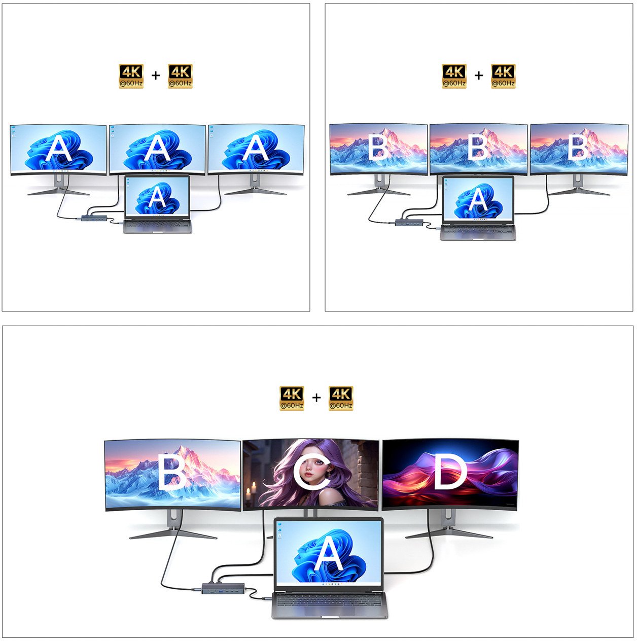14w1 HUB για 3 οθόνες USB-A USB-C DisplayPort HDMI RJ45 SD TF mini jack - γκρι 14w1 HUB για 3 οθόνες USB-A USB-C DisplayPort HDMI RJ45 SD TF mini jack - γκρι