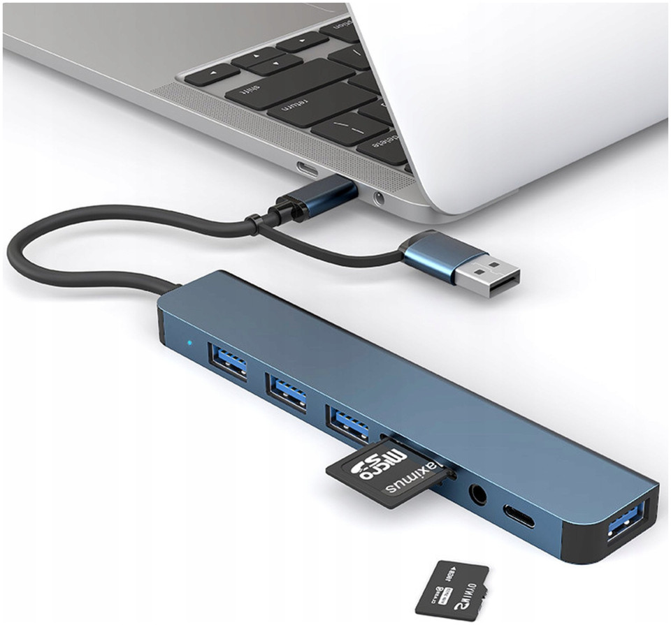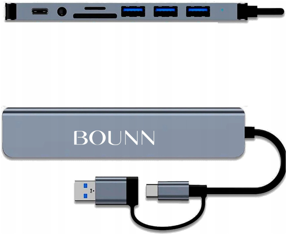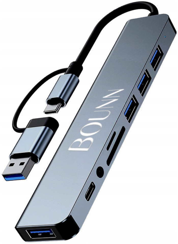 Bounn Hub USB-C + USB-A 8w2 διανομέας 3xUSB 2.0 Sd/Tf USB-C miniJack USB 3.0