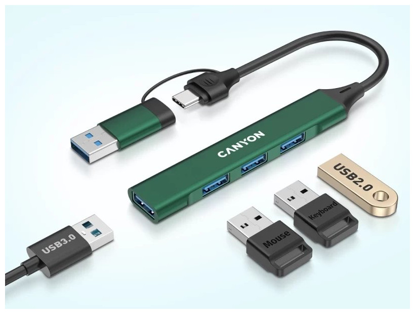 CANYON HUB DS-02 4 σε 1 USB-A/C Πράσινο