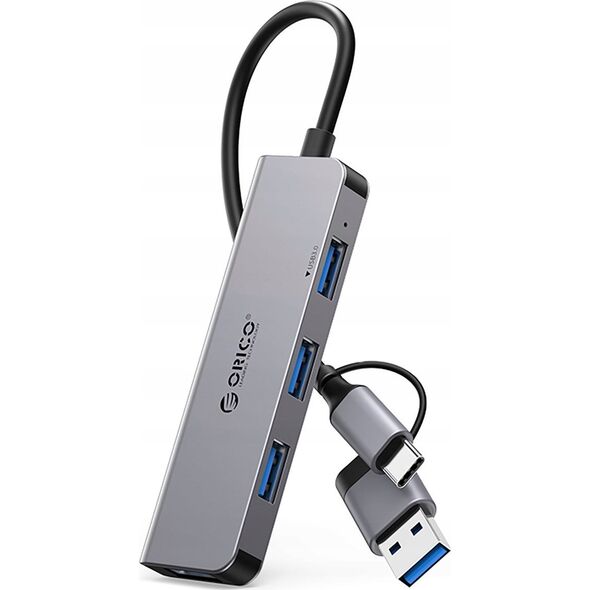 HUB 4-portowy input 2w1: USB-A/USB-C / output: 3x USB-A 2.0 + 1x USB-A 3.0 καλώδιο 0,17M - γκρι