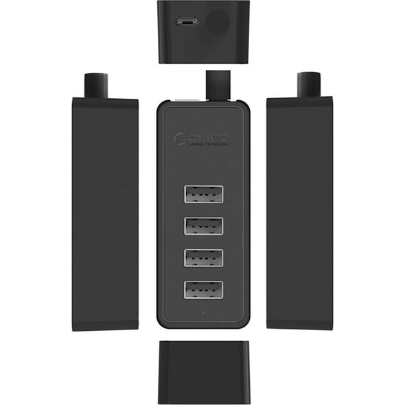HUB 4-portowy USB-A 2.0 przewód 0,3M - czarny