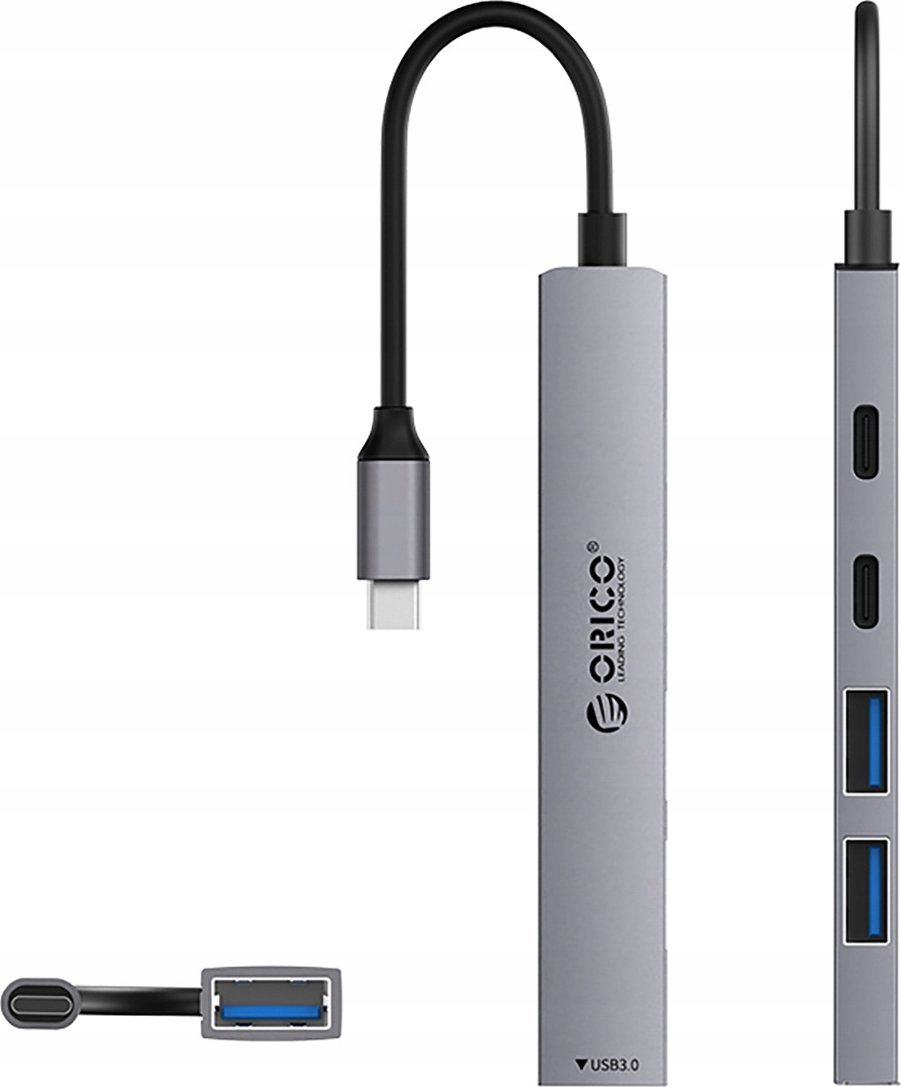 HUB 5-port input 2-in-1: USB-A/USB-C / output: 2x USB-A 2.0 + 1x USB-A 3.0 + 1x USB-C 2.0 + 1x USB-C PD65W καλώδιο 0,17M - γκρι