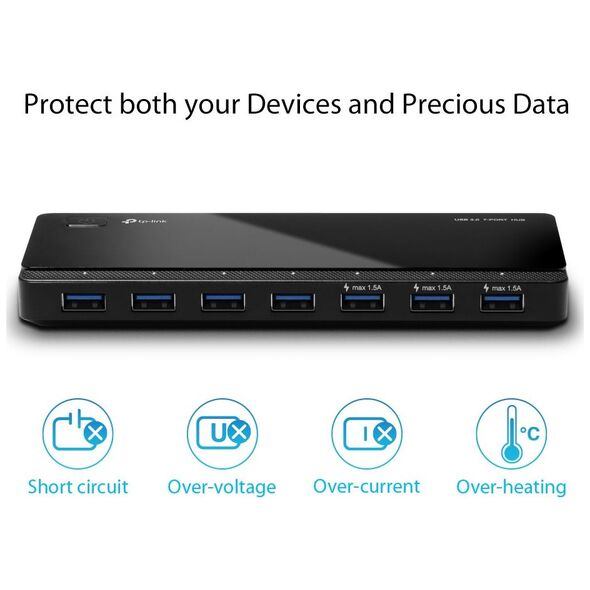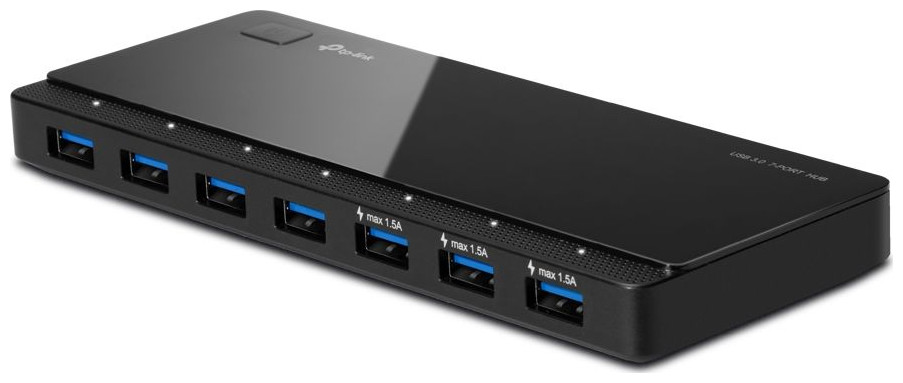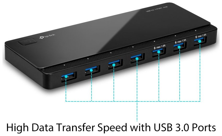 Huby USB USB Hub UH700 jest doskonałym rozwiązaniem do transferu danych , gdy trzeba podłączyć dyski USB, myszy USB, drukarkę i inne urządzenia jednocześnie. Porty USB 3.0 oferują przesyłanie danych z prędkością do 5 Gbps , 10 razy szybciej niż USB 2.0. Znacznie poszerz porty USB. UH700 dodaje 7 dodatkowych portów USB do komputera, co eliminuje konieczność przełączania się między urządzeniami.