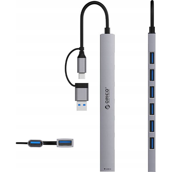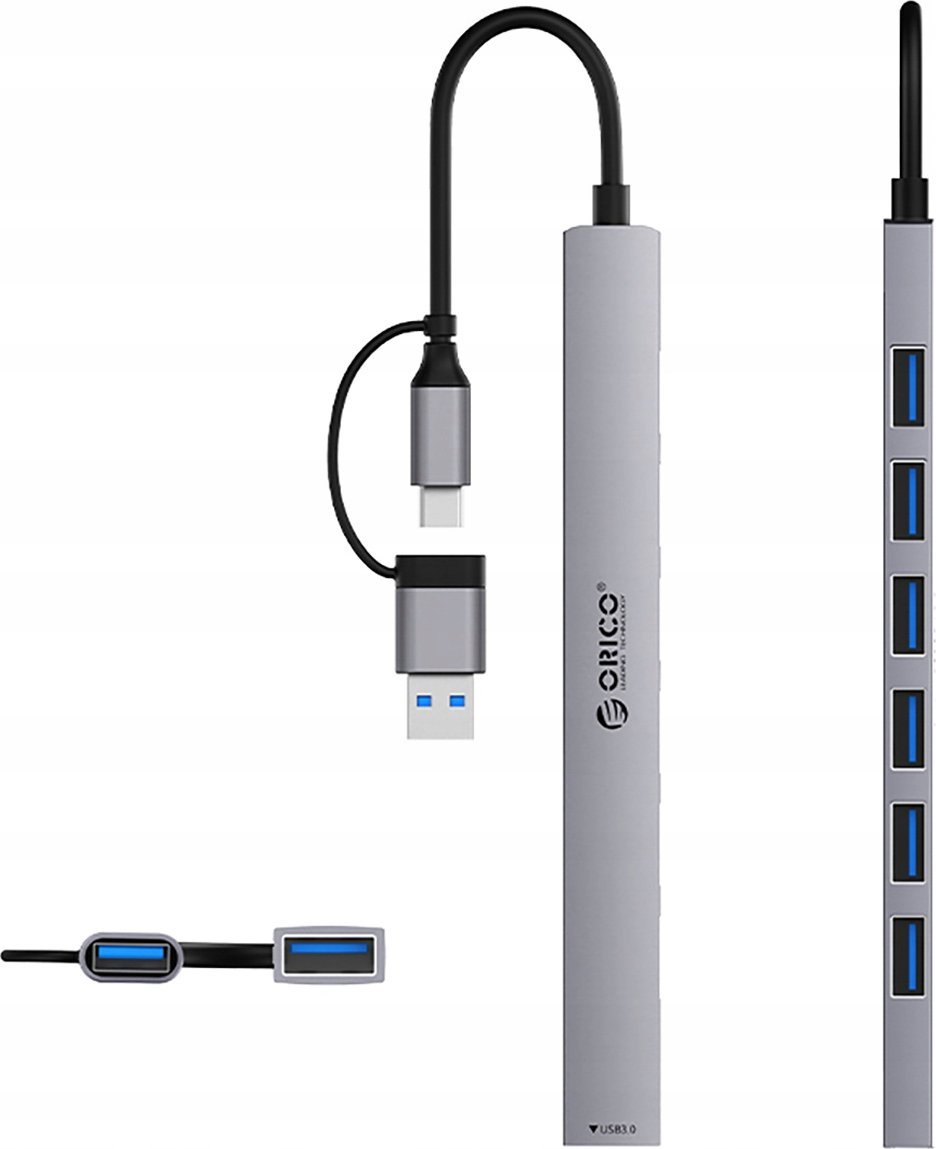 HUB 7 θυρών είσοδος 2 σε 1: USB-A/USB-C / έξοδος: 1x USB-A 3.0 + 6x USB-A 2.0 - γκρι