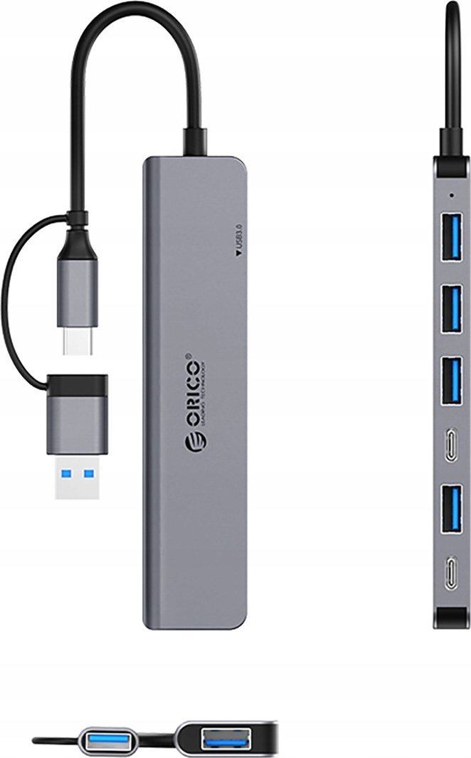 HUB 7 θυρών είσοδος 2 σε 1: USB-A/USB-C / έξοδος: 4x USB-A 2.0 + 1x USB-A 3.0 + 2x USB-C 2.0 καλώδιο 0,17M - γκρι