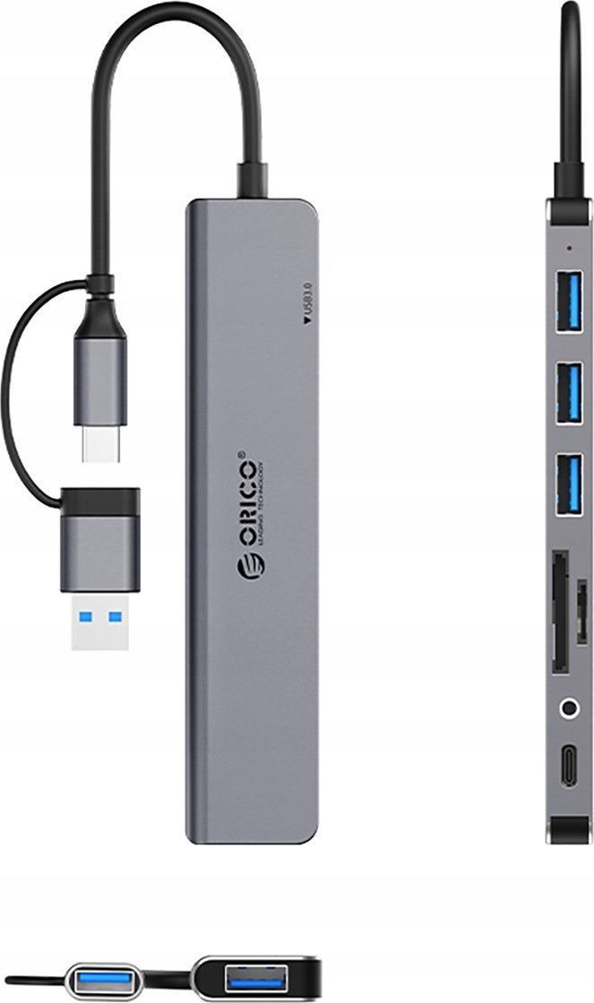 HUB είσοδος 2 σε 1: USB-A/USB-C / έξοδος: 3x USB-A 2.0 + 1x USB-A 3.0 + 1x USB-C 2.0 + 1x 3,5mm Ήχος & Μικρόφωνο + 2x TF&SD καλώδιο 0,17M - γκρι