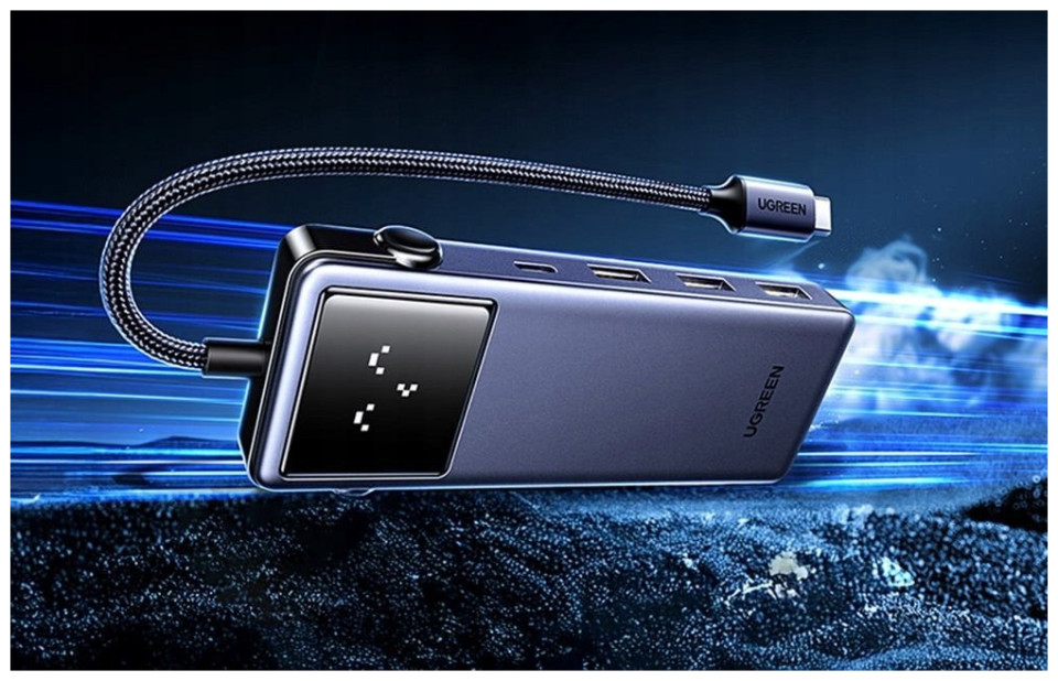 Ugreen CM888 Uno to kompaktowy i funkcjonalny hub USB-C typu 7w1, który rozszerza możliwości komputera o port HDMI, trzy porty USB-A, jeden port USB-C 3.0, port ładowania PD o mocy 100 W oraz gigabitowy port Ethernet. Obsługuje obraz w 4K@60Hz, szybki transfer danych oraz jednoczesną pracę wielu urządzeń peryferyjnych. Dzięki szerokiej kompatybilności z systemami Windows, macOS, Linux, iOS i Android stanowi uniwersalne narzędzie do codziennej pracy i rozrywki.