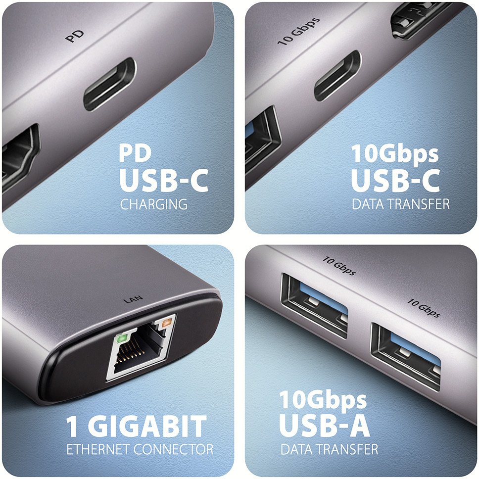 HUB USB Axagon AXAGON HMC-6G2L, USB hub 10Gb/s, 2x USB-A, 1x USB-C, HDMI 4k/60, RJ-45, PD 100W, καλώδιο USB-C 15cm