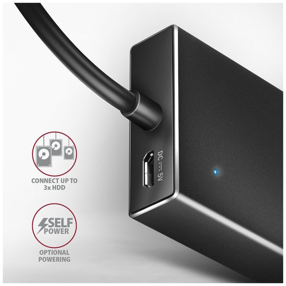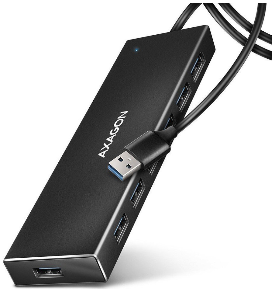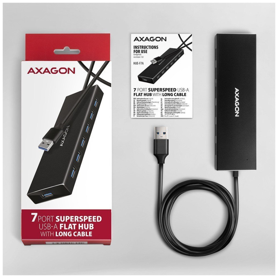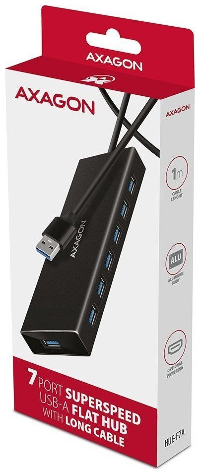 HUB USB Axagon AXAGON HUE-F7A, 7x USB 3.2 Gen 1 ALU FLAT CHARGING hub, υποδοχή τροφοδοσίας micro USB, καλώδιο USB-A 1m