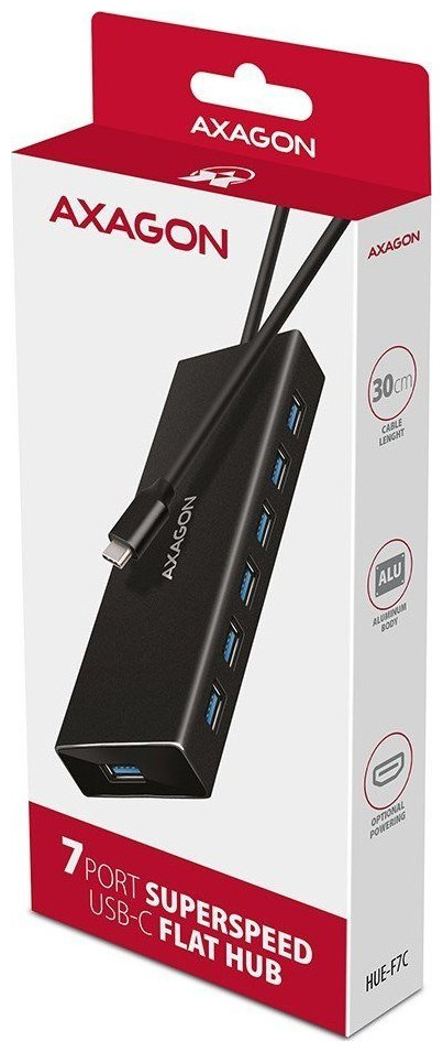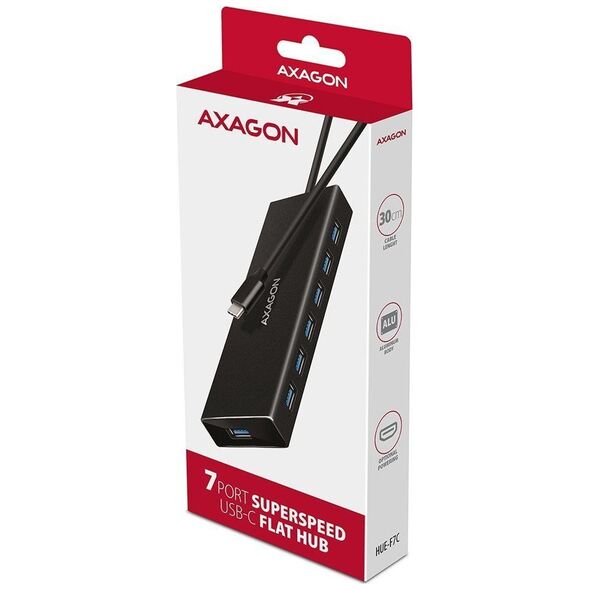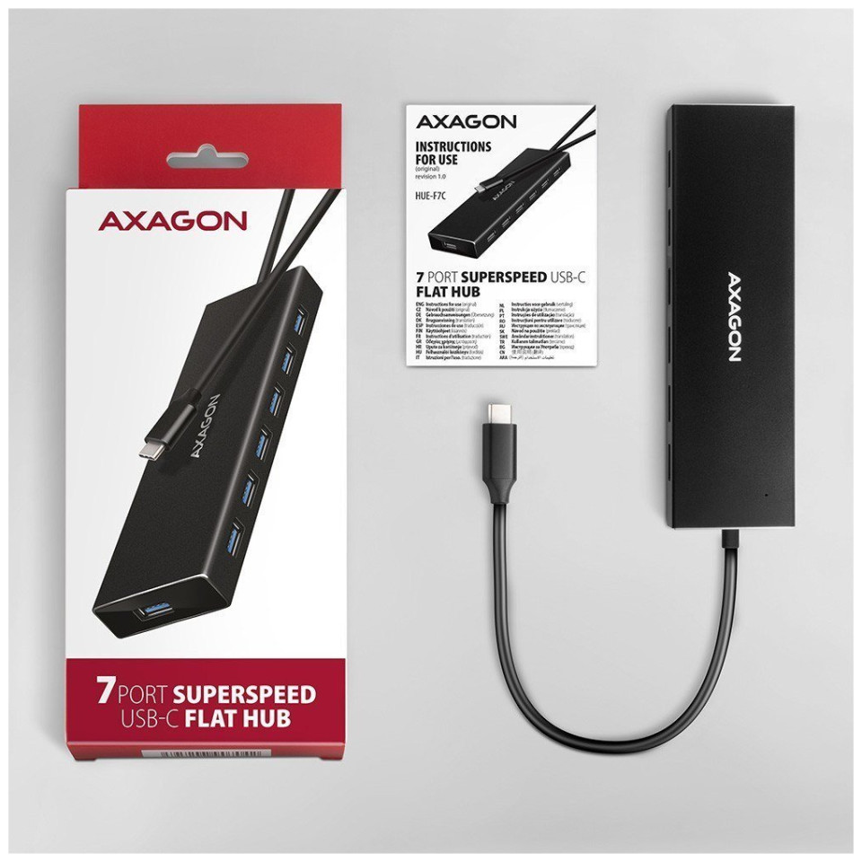 Axagon USB HUB AXAGON HUE-F7A 7x USB 3.2 Gen 1 Flat Hub αλουμινίου, 30 cm καλώδιο USB-C