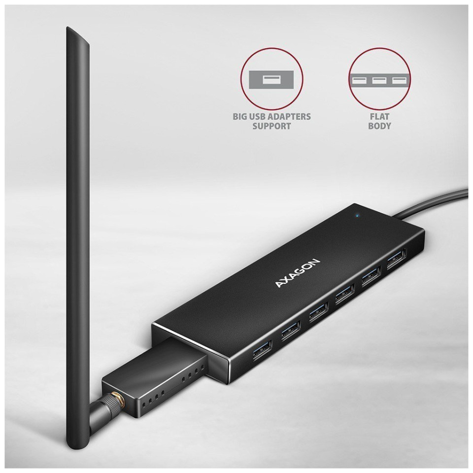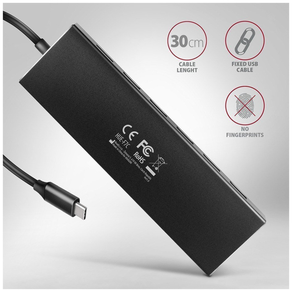 HUB USB Axagon AXAGON HUE-F7A 7x USB 3.2 Gen 1 Αλουμινένιο Επίπεδο Hub, 30 cm USB-C-Kabel