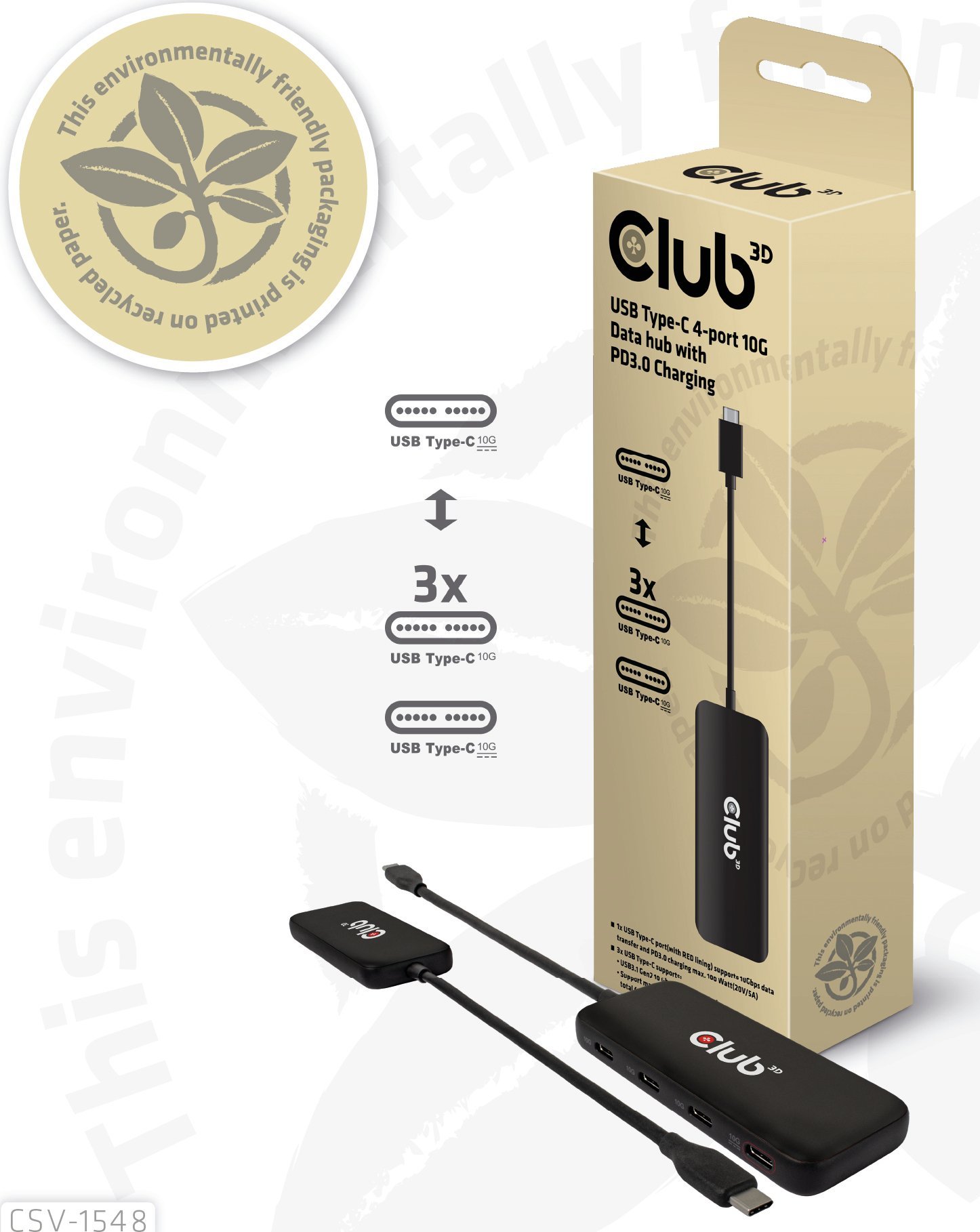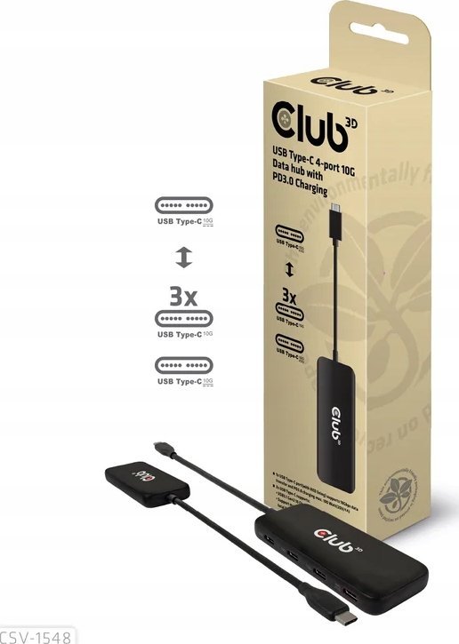 HUB USB Club 3D Club3D USB-Hub Τύπος C > 4x USB Τύπος C 10Gbps + 100W PD St/Bu retail