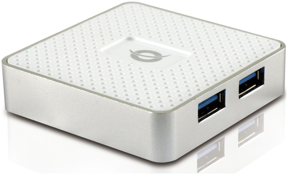 Hub USB Ten 4-portowy hub USB 3.0 umożliwia rozbudowę netbooka lub komputera PC o 4 dodatkowe porty USB 3.0 przy użyciu tylko jednego wolnego portu USB 3.0.